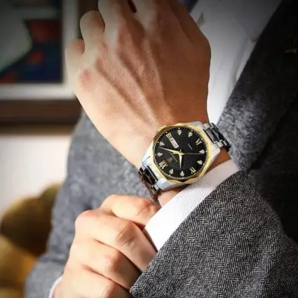 POEDAGAR 998 Waterproof Luminous Date Week Stainless Steel Quartz Watch